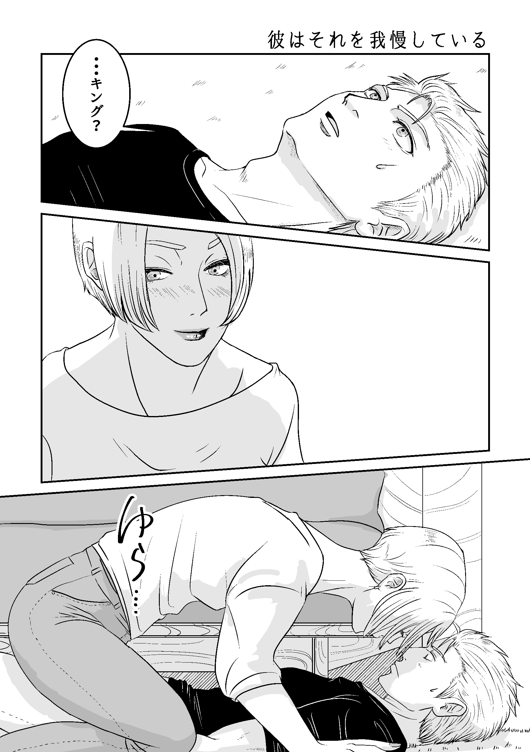 デジタル同人誌に収録した漫画の再録。この漫画については特にコメントはない。二人の後ろにかかってる絵のうち、一番左のやつは「彼はそれを我慢している」の背景にもあった。キングさんがリョウと住み出す前から持ってた絵なんだよ、と言う裏話。
