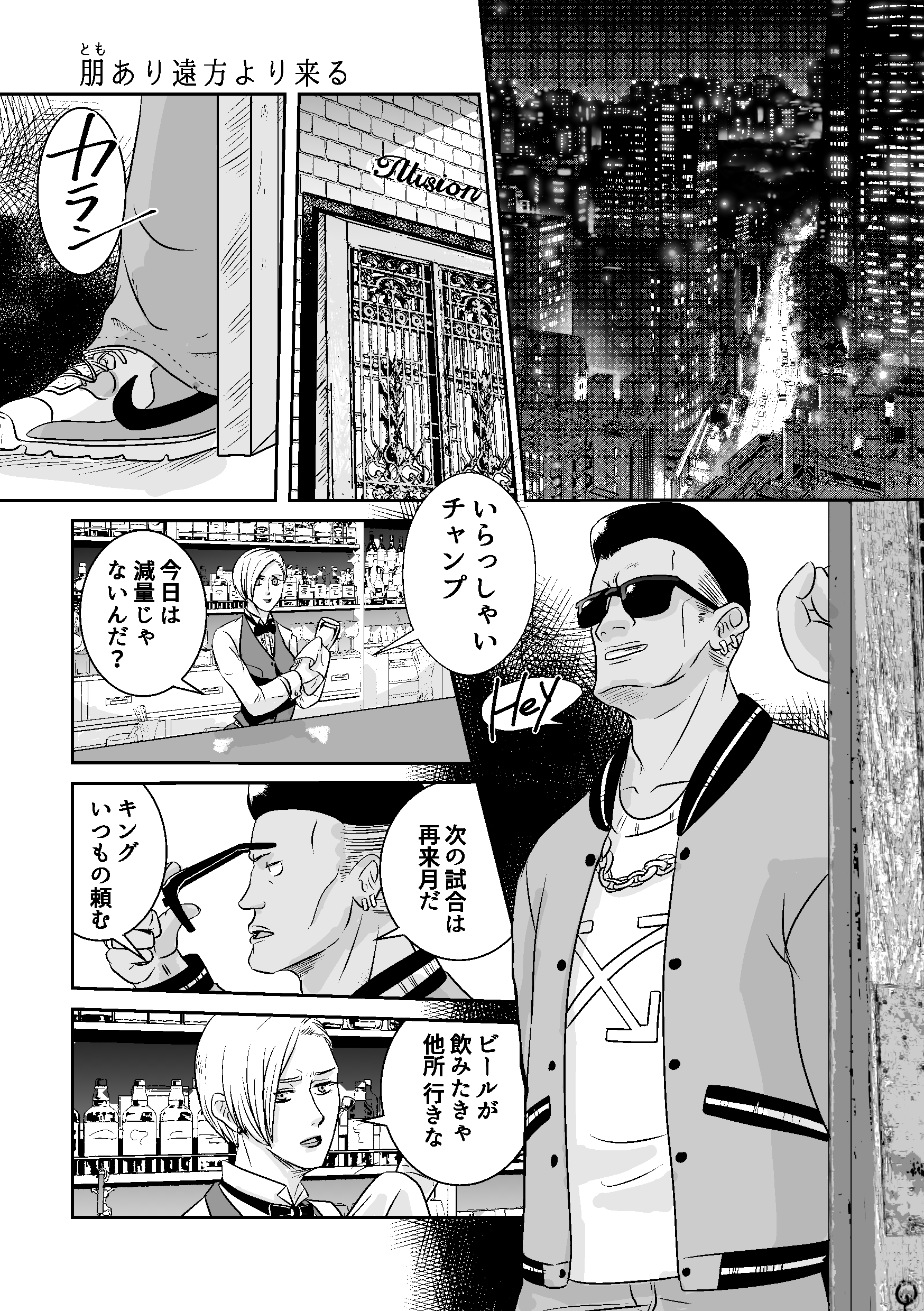 本のP5.のイラストをX(twitter)にアップしたのがきっかけで、そのシチュエーションの後を想像した4P漫画。初出はX(twitter)。当初KOF軸で描いてたのだけど龍虎本として本作を制作するにあたりキングさんのビジュアルを変えたりしてみた。あんまり気づいてもらってないと思う。