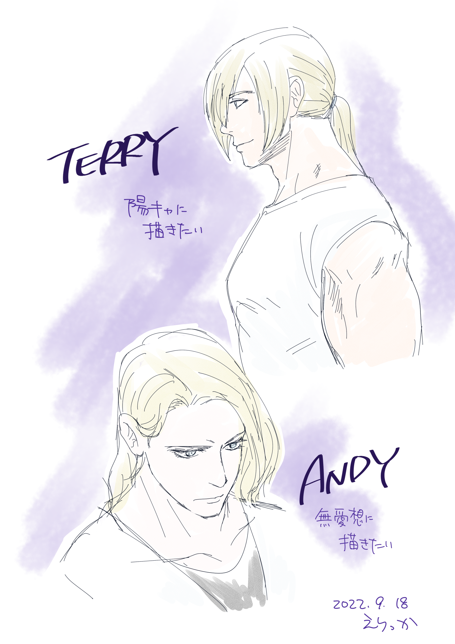 11/23(いい兄さんの日)にちなんでアップしたSNKのお兄ちゃん。ほんとはビリーも描きたかったけど挫折した。イケメンに描くぞという気概のもと描いたけど描けたかどうかはもはやわかりません!テリーはいつも明るいセクシーさがある感じで描けたらな〜と思ってるんですが、もう少し頑張りましょうって感じ。個人的には。眉毛もう少し下げたらよかったかな〜。(2022.11.23twitterにアップ)