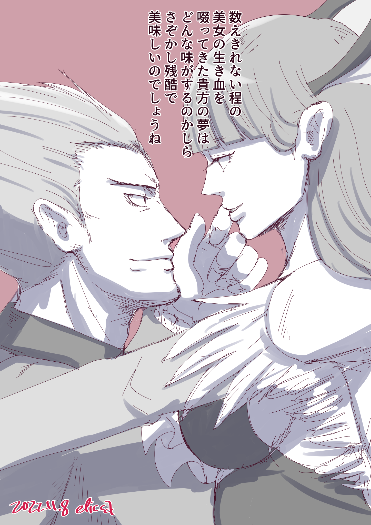 デミモリ好きだな〜と言うことで一枚それっぽいの描いてみました。本当はもっとえちい感じで描いたんだけどデミトリがどうしても上手くいかなかったから最終的にこうなった。本当はもっと化け物っぽく描きたかった。化け物だけどカッコよく描くと言うのが自分の力量では無理でございました。練習練習・・・(2022.11.8 twitterで初出)