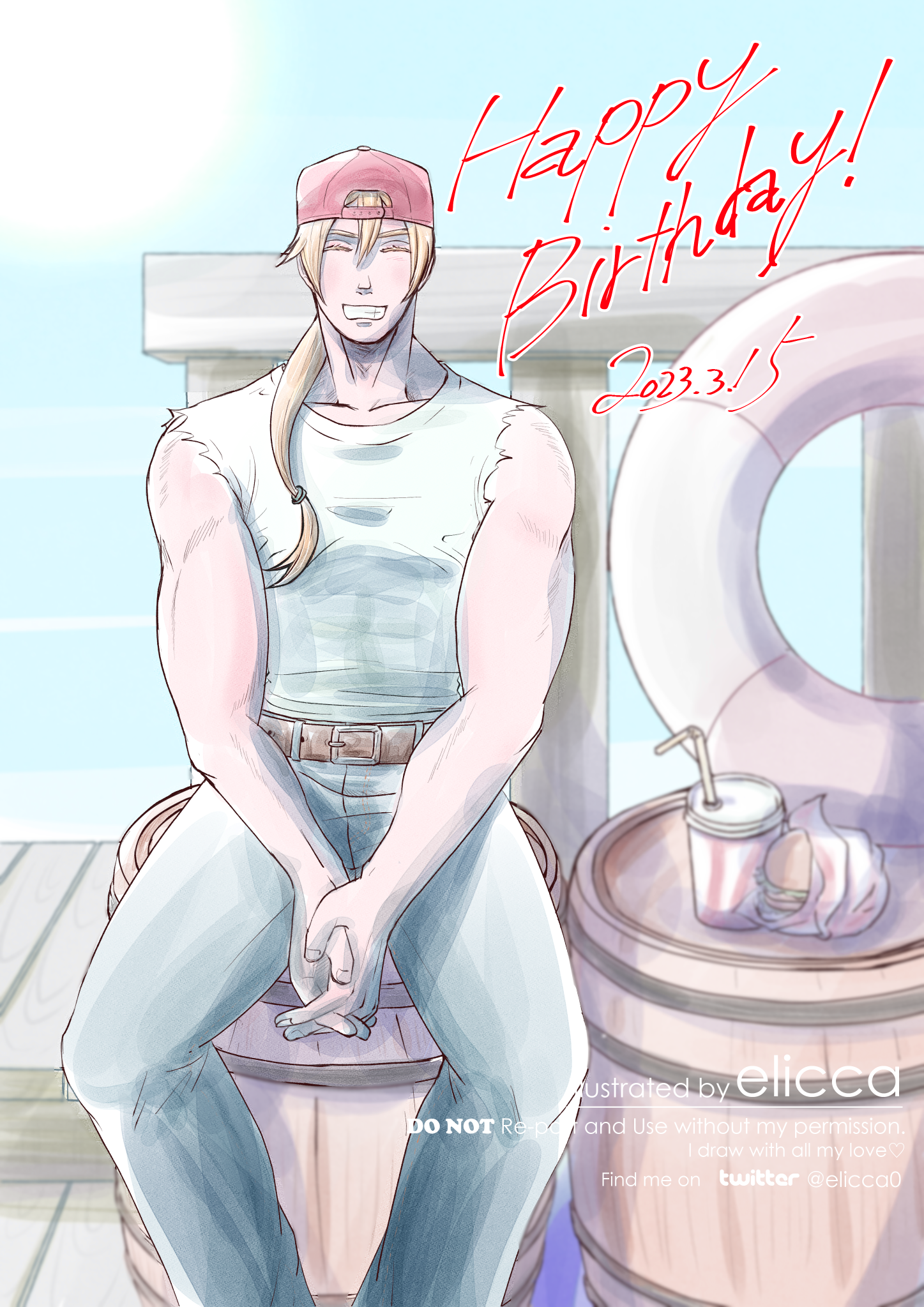テリーのお誕生日絵。このテリーさんは何かムチっとしていい感じに描けたし笑顔も可愛く描けたし、なかなか良いよねって勝手に思い込んでいる。背景はKOF15のガロチステージ。クリスタのいいろペン+水彩塗り。(2023.3.15 twitterにアップ)