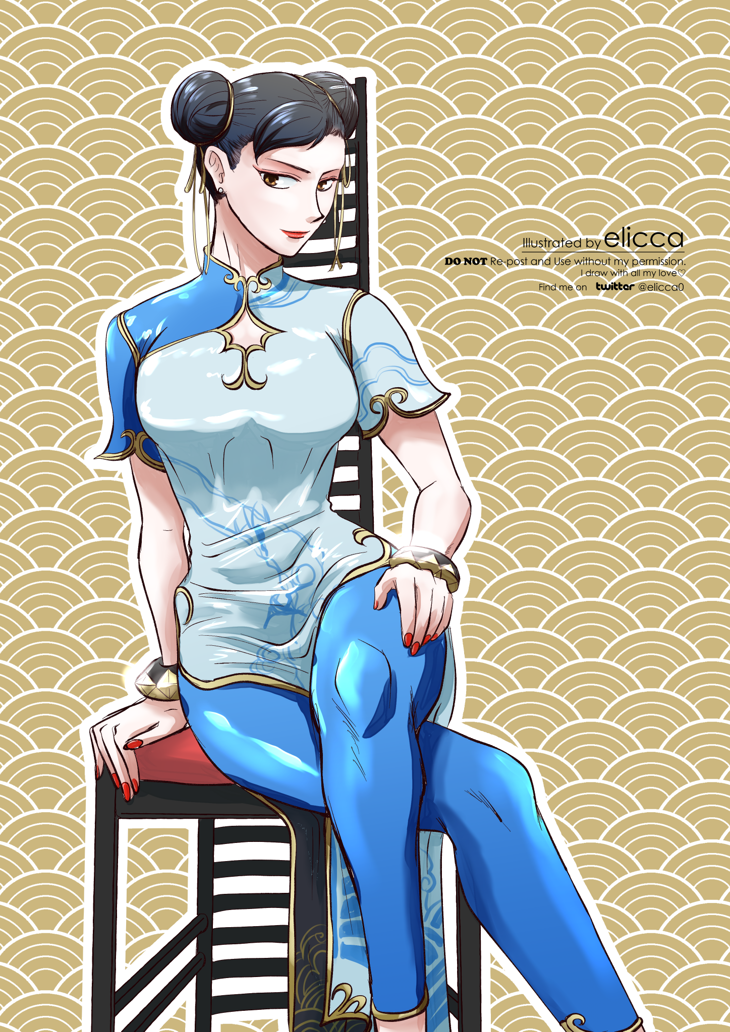 ストリートファイター6の発売を応援する企画のバトンを回していただいたので描いた春麗。春麗まじですげえからMac OSで「ちゅんりー」って打ったらちゃんと春麗って出てくる。自分的にきちんと絵を描きたいときの「Gペン+水多めでCG塗り」で塗りました。スト6の春麗可愛いよね〜!(2023.5.14 twitterにアップしたものの背景差し替え)