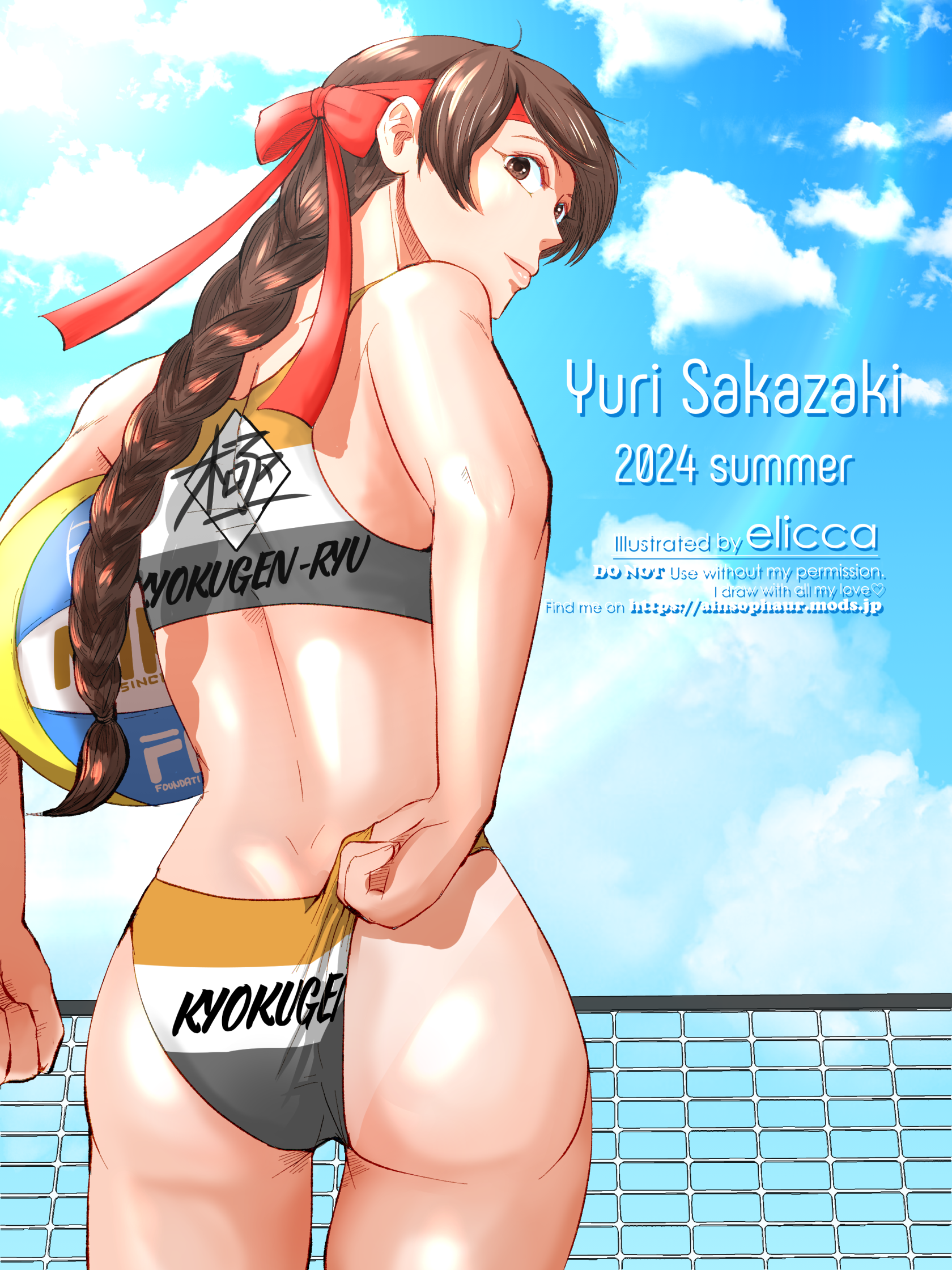 今年の夏もやっぱり暑いし、XのTLにも水着イラストが目立ってきたし、私も水着描こうかな〜ということで描いた「サウスタウン主催のビーチバレー大会に極限流の宣伝目的で出場したユリちゃん」。お尻のおかげかもう二度とこんなにたくさんの人には見てもらえないだろうなという数のインプレッションだった。ありがとうございました。何も考えずにさっさと描いたのにイラストとはよくわからないものです。(2024.7.7 XにUP)