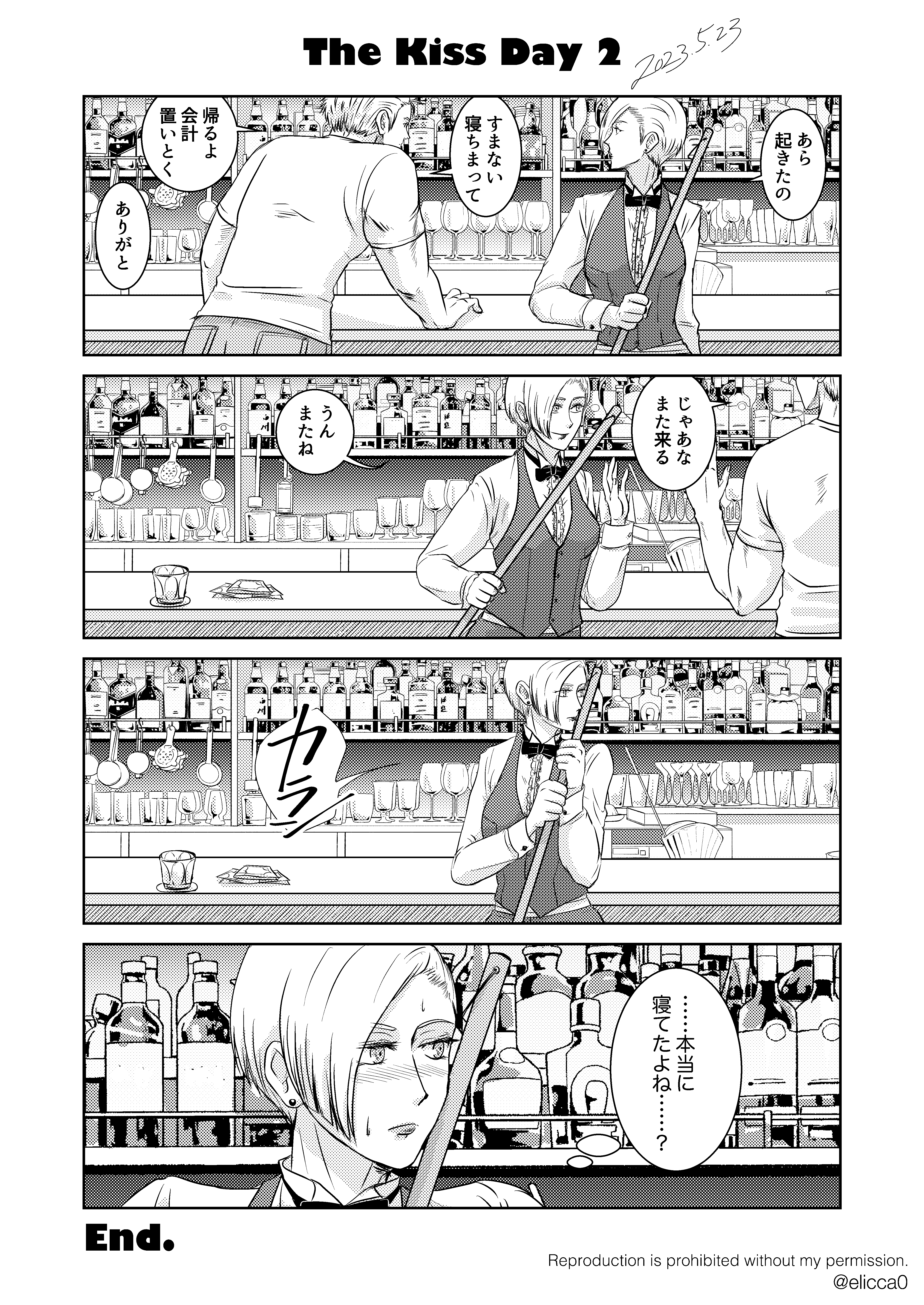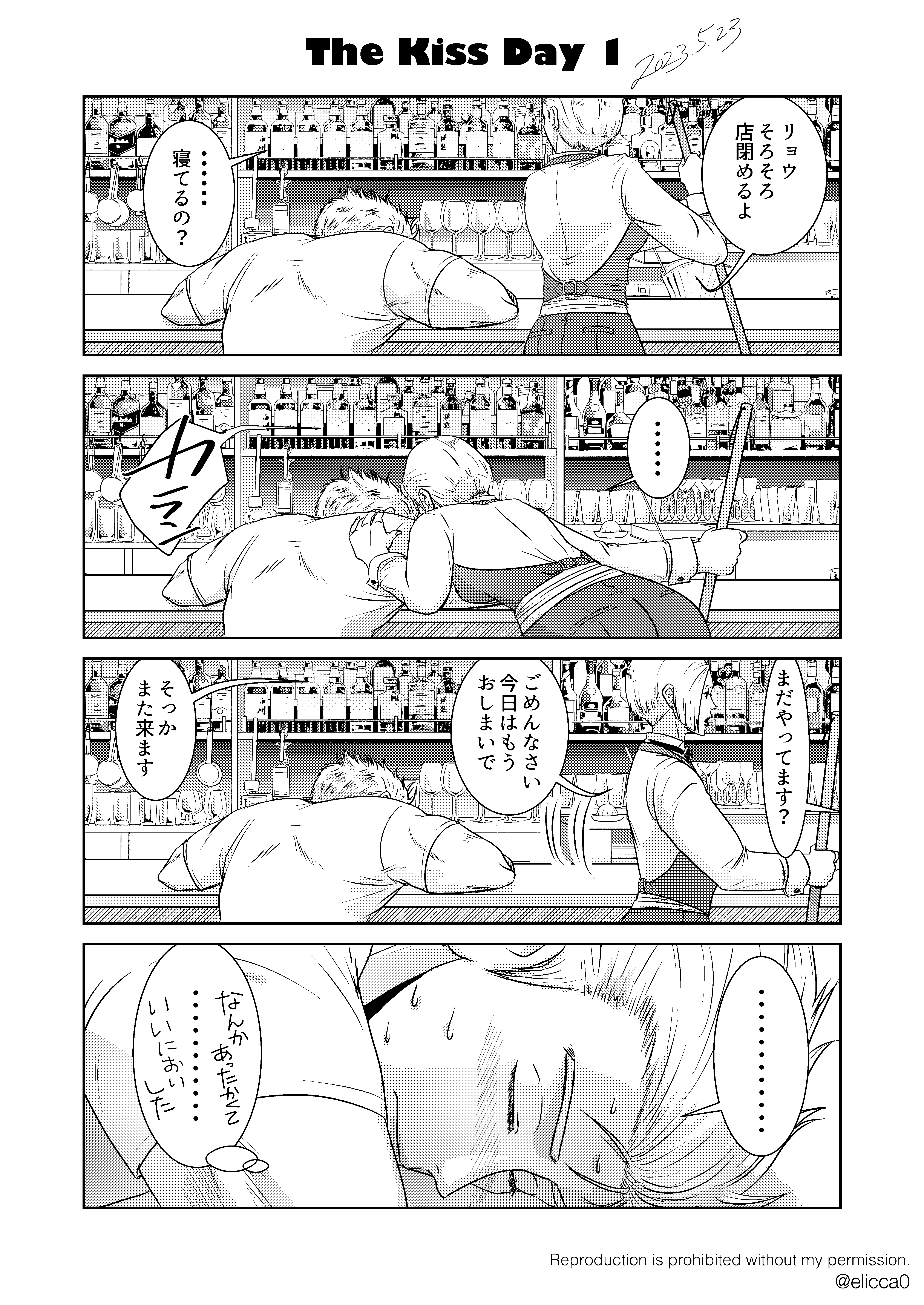 5月23日は日本で初めてキスシーンのある映画が公開された日だそうで、それで「キスの日」なんだそうな。なんだかんだと毎年キスの日にはリョウキンの作品をアップしているんだけど、今年は漫画でした。自分で描いといてあれだけどめちゃくちゃ好きや!!!!こういう二人が好きなんや!!!!という作品。いろんな方にコメントいただけてとても嬉しかったです。みんなリョウキン好きなんじゃん!公式さん二人の更なる発展をお願いします!(2023.5.22 twitterにアップ)