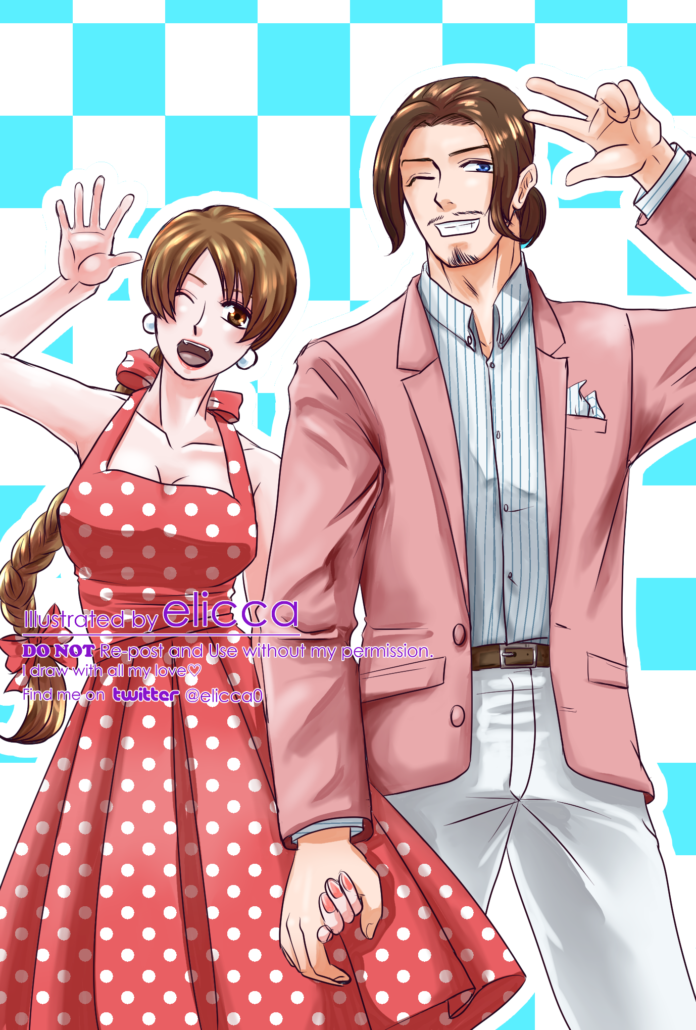 結果的にリョウ&キングバージョンとロバート&ユリバージョン、対になる感じにできたから良かったんじゃないかと思います。ロバユリちゃんの方のテーマは60sです。可愛く描けたと思います!私の中のロバユリは大体こんなイメージです。(2023.6.24~25 コンビニのネットプリントで配布)