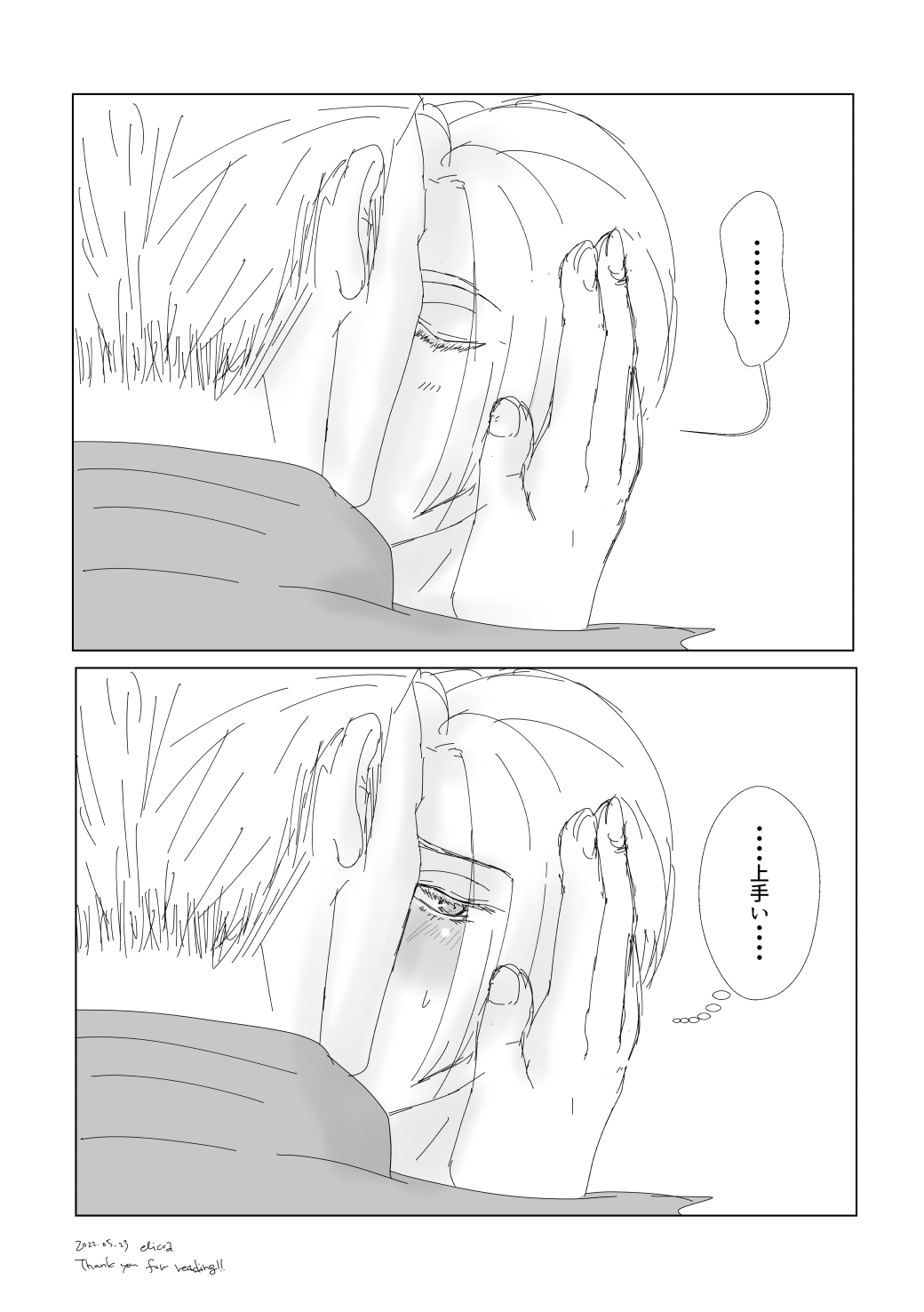 上のイラストの続き。格闘家という「相手の動きや心理を見極め反応する」ことに長けている人はキスもセックスもきっとうまいはずという願望がこんなやつを描かせた。改めて見ると想像を掻き立てるエロい感じに描けたのではないかと自画自賛。絵のクオリティはともかく。(2022.5.23 twitterで初出)